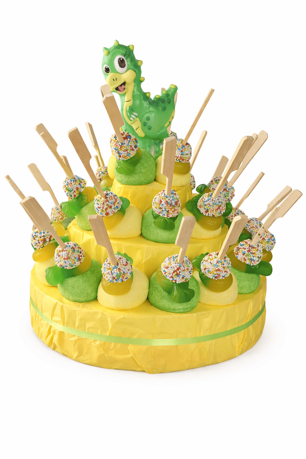 Maak een smaakvolle reis naar het tijdperk van de dinosaurussen met onze fascinerende snoeptaart dino! Deze unieke traktatie is perfect voor zowel jonge avonturiers als liefhebbers van prehistorische wezens. Duik in de wereld van de dinosaurussen terwijl je geniet van elk snoepje van deze heerlijke en kleurrijke taart.