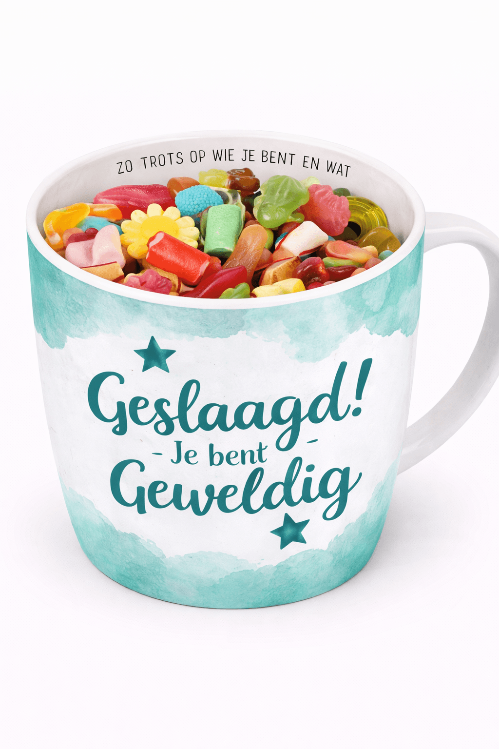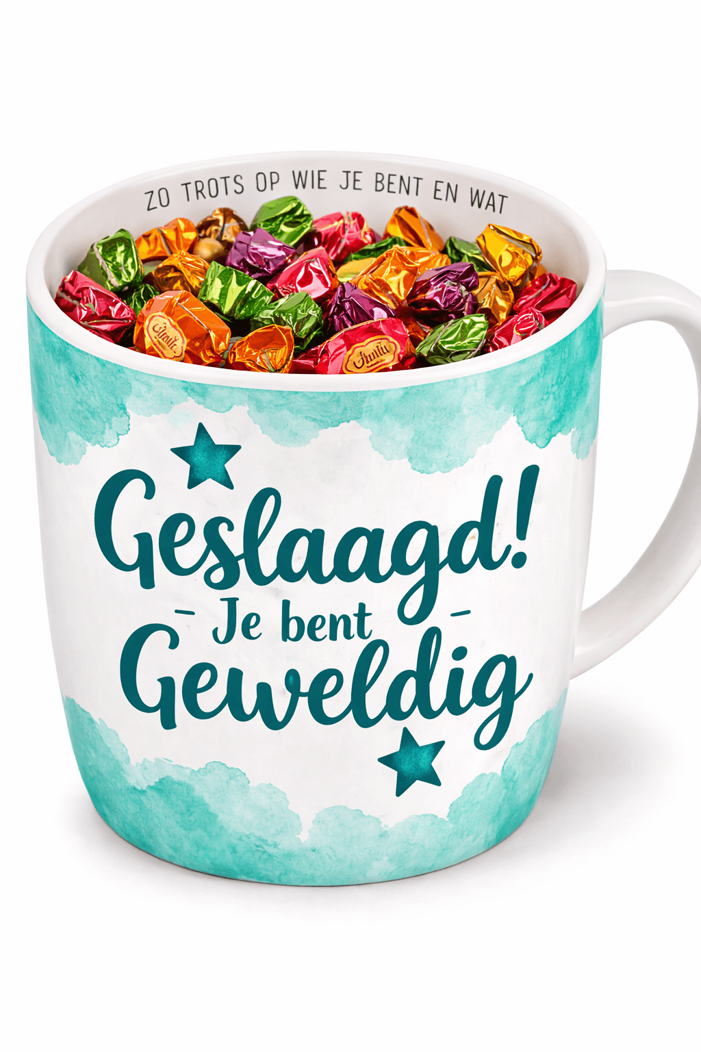 “Ontdek onze vreugdevolle collectie ‘Enjoy Mokken – Geslaagd’! Vier de prestaties van je dierbaren met onze prachtig ontworpen mokken die de overwinning en inspanning weerspiegelen. Of het nu gaat om afstuderen, examenresultaten of andere mijlpalen, onze mokken zijn het ideale cadeau om succes te vieren. Kies uit diverse ontwerpen en kleuren die passen bij de persoonlijkheid van de geslaagde. Elke mok is met aandacht gemaakt en garandeert vreugde bij elk gebruik. Verken nu ons assortiment en vind de perfecte mok om ‘Geslaagd’ te vieren op een unieke en gedenkwaardige manier.”