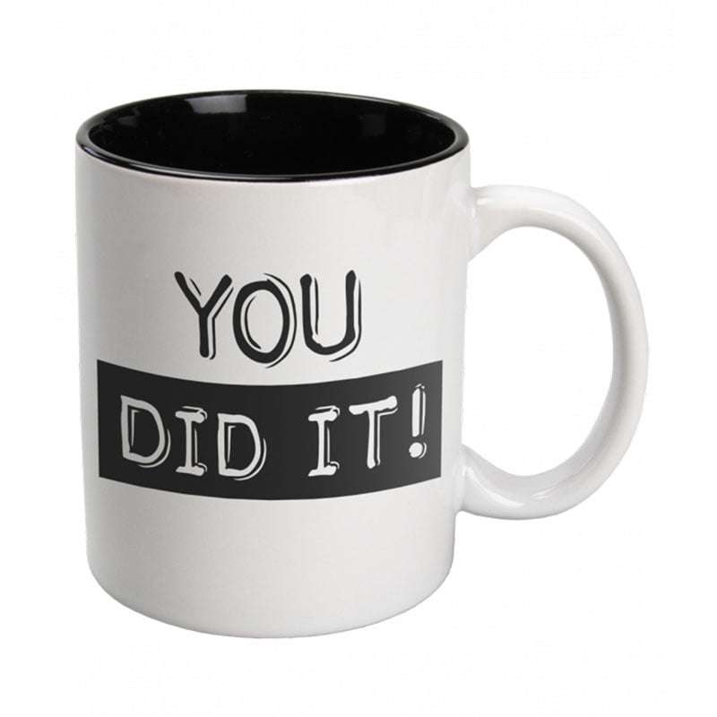 Mok zwart wit You did it, een moderne en stijlvolle mok. Super leuk als kado voor je baas, chef of collega. Met wat humor is de mok geschikt voor vele gelegenheden. Deze moderne en stijlvolle mokken zijn van keramiek en zijn in 18 verschillende teksten te verkrijgen. De zwart-wit mok is magnetron- en vaatwasserbestendig. De inhoud is ongeveer 300 ml.