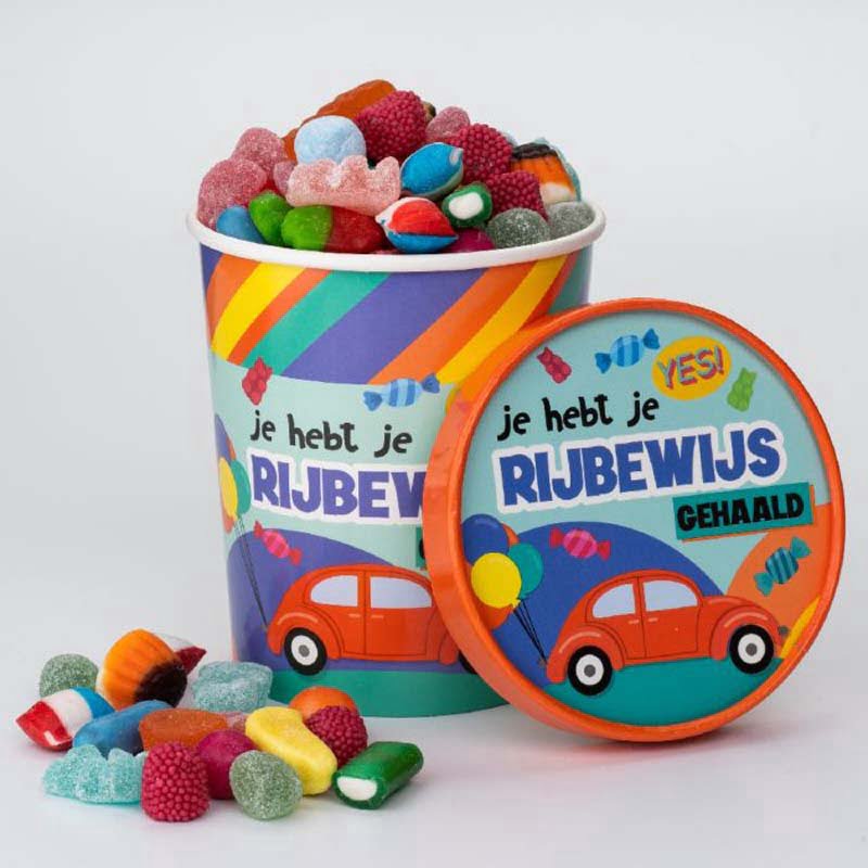 Ontdek een wereld van zoete verleiding en verras hem of haar met onze exclusieve snoeppot of candy bucket met de tekst “Rijbewijs”, rijkelijk gevuld met een uitgebalanceerde mix van heerlijke snoepjes, smaakvolle drop of verrukkelijke toffees, is niet alleen een traktatie voor de smaakpapillen, maar ook een perfect cadeau om iemand te feliciteren, te bedanken of een opkikkertje te geven.