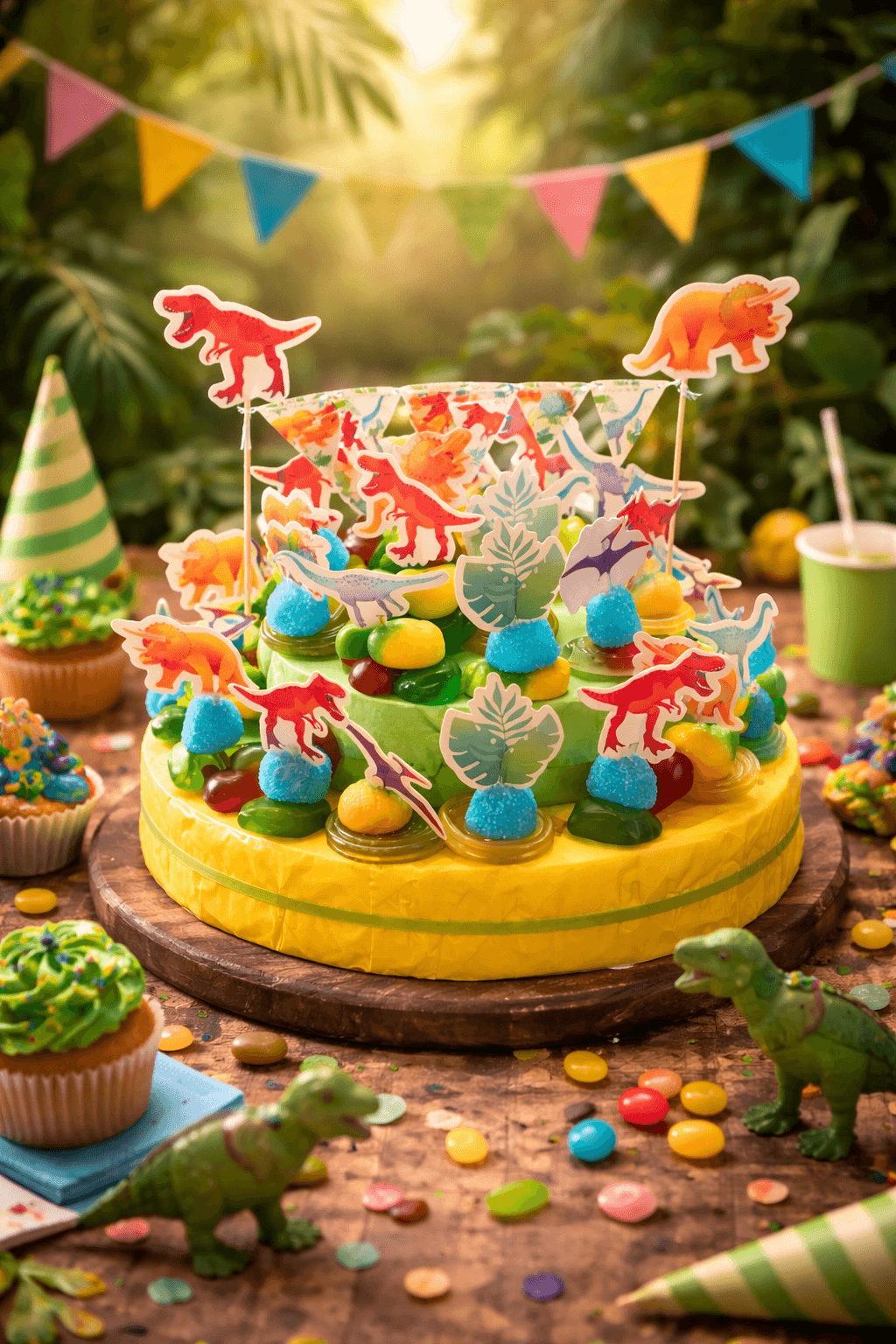 Maar het draait niet alleen om de looks. Onze snoeptaart dino zit boordevol verrukkelijke snoepjes die je smaakpapillen zullen verwennen. Van zoete ananas en kleurrijke berries tot jojo,s.