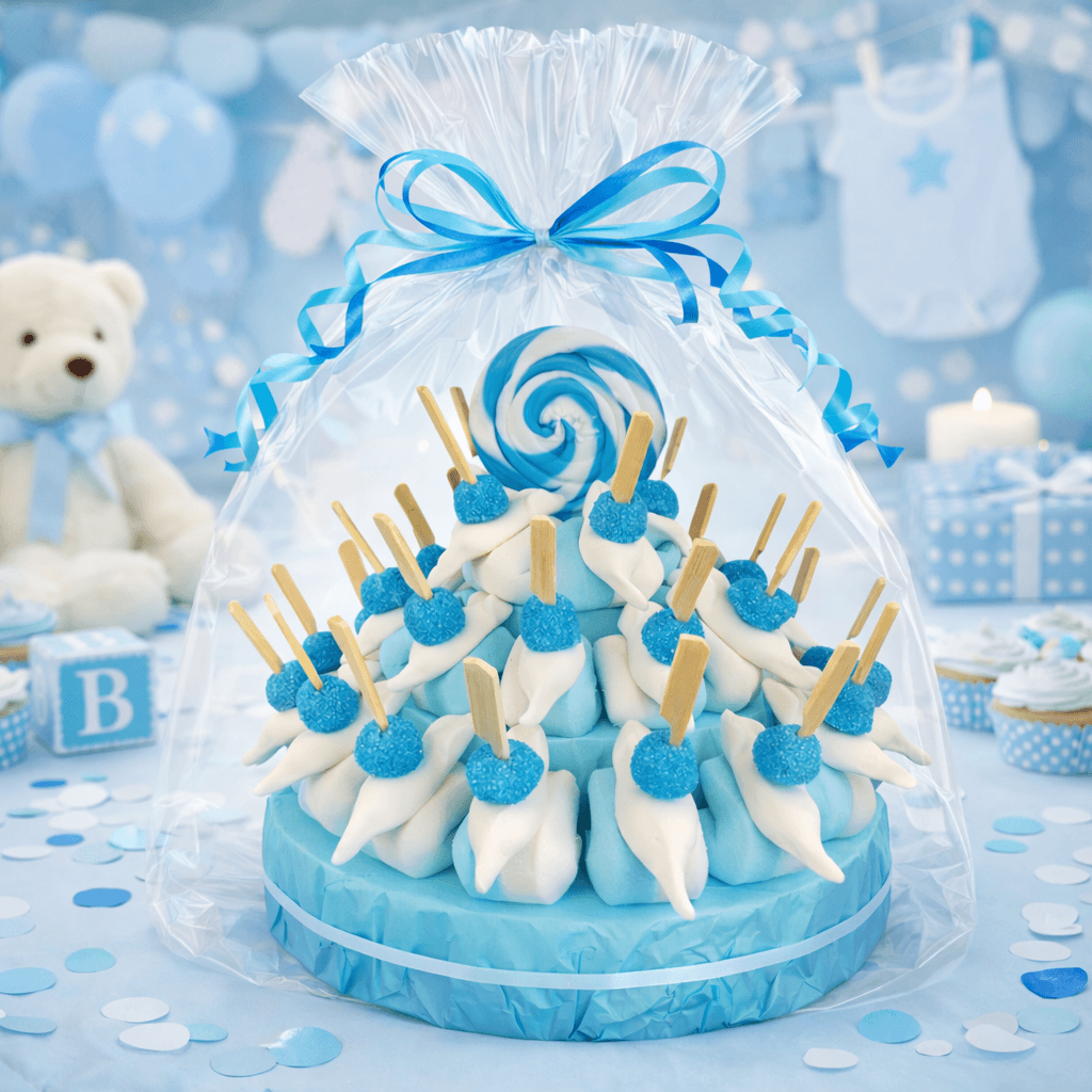 Of je nu een babyshower organiseert, een kraamfeest hebt of gewoon een traktatie zoekt om de geboorte van een jongen te vieren, onze snoeptaart geboorte jongen is de ideale keuze. Het zal de feestvreugde vergroten en een glimlach op ieders gezicht toveren.