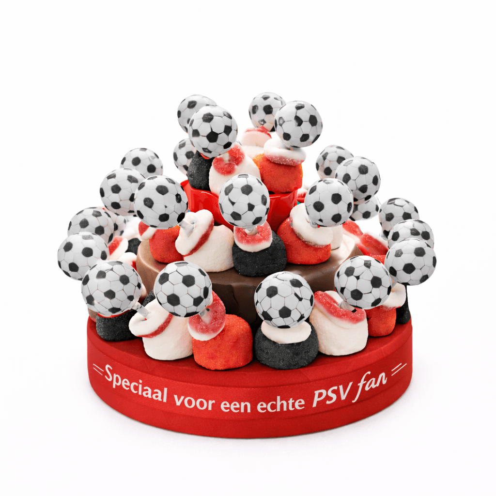 Ben jij een gepassioneerde fan van PSV? Dan hebben we de perfecte traktatie voor jou! Onze Snoeptaart PSV is een smakelijke viering van jouw liefde voor deze geweldige voetbalclub. Met een combinatie van overheerlijke snoepjes en een prachtig PSV-thema is deze taart een feest voor de smaakpapillen en een visueel spektakel!